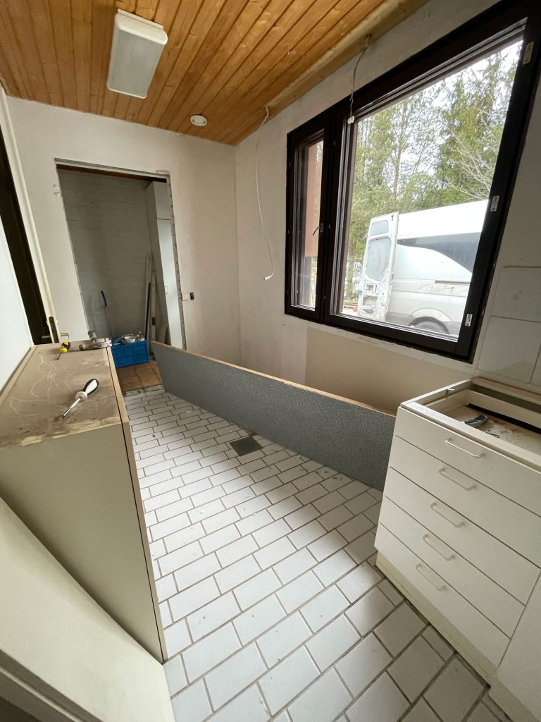 Remontti alkoi sovitusti ja eteni aiempiin kokemuksiimme verrattuna yllättävänkin tarkasti suunnitellussa aikataulussa. Koimme yhteistyön Nikon kanssa poikkeuksellisen toimivaksi: Niko piti meidät ajan tasalla urakan edistymisestä, jaksoi selittää kärsivällisesti työvaiheista, minkä lisäksi hän varmisti meiltä aina tarkasti toiveemme viimeistelyyn liittyviä pienimpiäkin yksityiskohtia myöten.